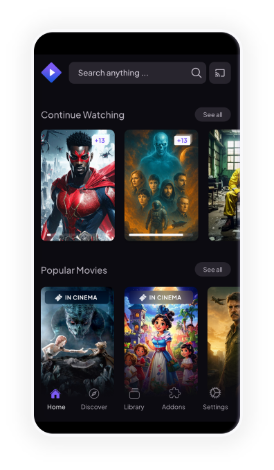 Stremio is designed to be user-friendly and easy to use. With its clean and intuitive interface you can easily navigate and find the content you want to watch.
